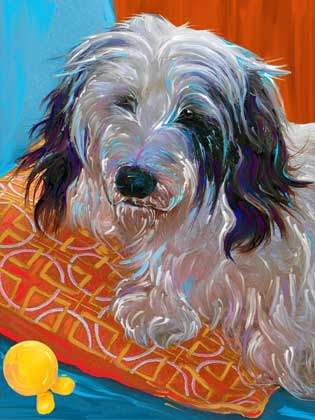 With the weather so flawless I decided I could not sit at my desk this morning so Allison & I packed up the laptops today and went to the Dallas arboretum to work outside this morning. She is finalizing 3 Warhols today and I am working on a few painterly projects. I just finished my 2nd Petit Basset Griffon Vendeen. This girl is named Momma Rose, I love that name. She was fun and a bit of a challenge as her eyes were not showing up at all in the original photograph. I am very happy with her final artwork. Now I have to get back to Ding-a-ling the dolphin. I may have her proof ready by late tonight.